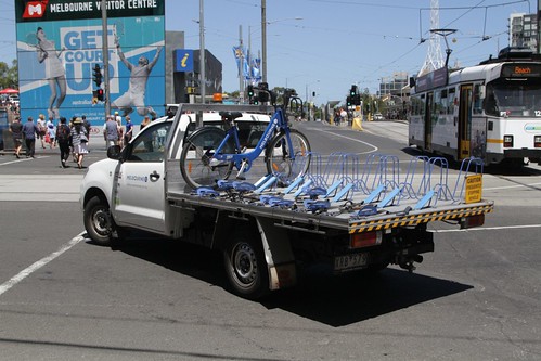 In the CBD I found a Melbourne Bike Share ute transferring bikes between stations. The service ended in November 2019.