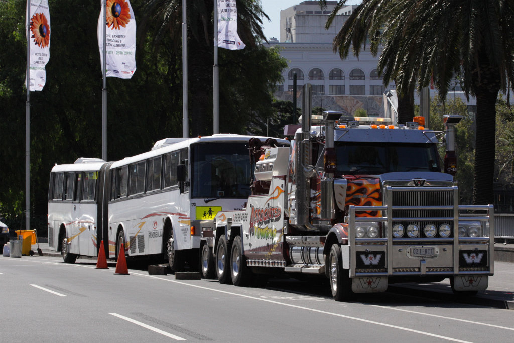 What happens when a bus breaks down? You send in one bad-ass looking tow truck to haul away.