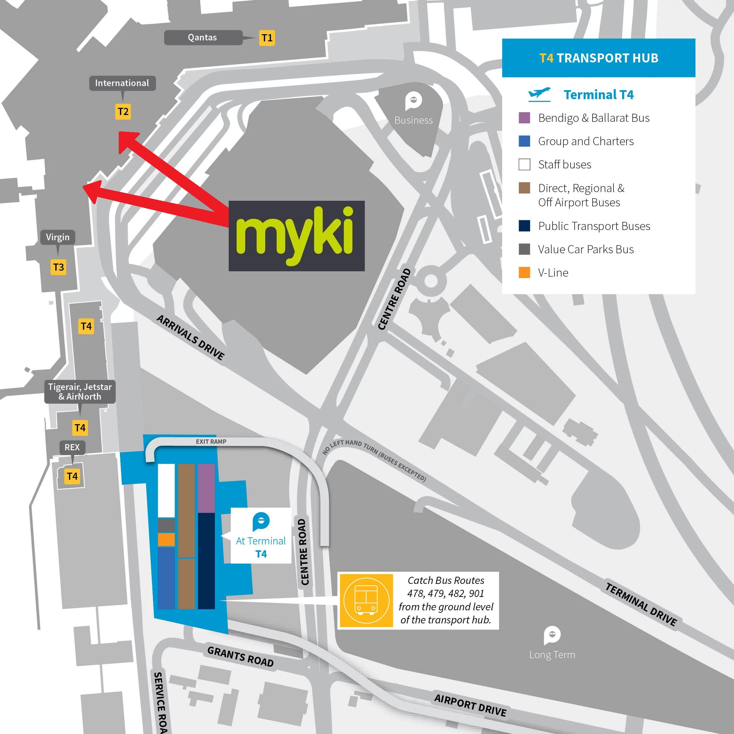 In order to travel on public transport in Melbourne, you’ll need a myki card. Top up or check your card balance at the myki machines located throughout the terminals using cash or EFTPOS/credit card.