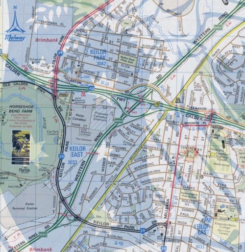 Plans for the Western Ring Road had been made real by 1991, when a whole slew of new proposed roads added to the Melway – including the Western Ring Road, an interchange with the Calder Freeway, and a southward extension of Keilor Park Drive to Milleara Road.