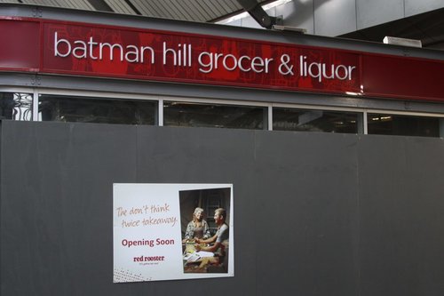 The final piece of the upper level puzzle is a Red Rooster take away, located in the dead corner formerly occupied by the mini-supermarket on the upper level Collins Street concourse. Will the location be the touch of death for fried chicken?