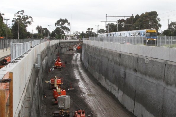 The grade separations at Furlong Road and Main Road are being built offline, thanks to the abundance of land adjoining the existing Sunbury line corridor.