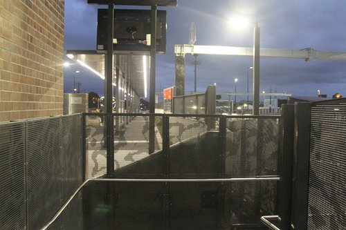 The designers of Mitcham station should be shot for putting a fence at the top of the zigzag ramps which are right next to, and level with, Mitcham Road, which has a footpath going right past the ramps of both platforms.