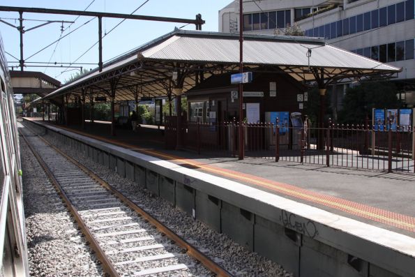 The large canopy on this island platform, originally located at Flinders Street Station over the St Kilda and Port Melbourne platforms, was dismantled and then rebuilt at Hawthorn on its Platform 2 and 3 in 1901.