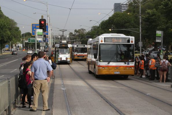 Meanwhile on Flemington Road I found buses driving along the tram tracks.