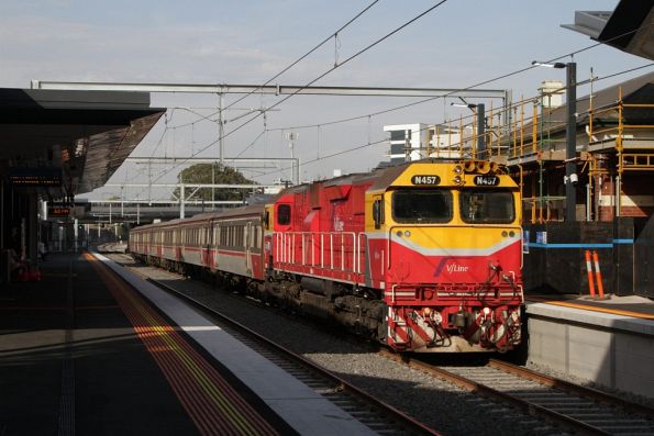 With both V/Line and suburban trains diverted onto the new platform 1 and 2 to allow the new V/Line track pair to be constructed.